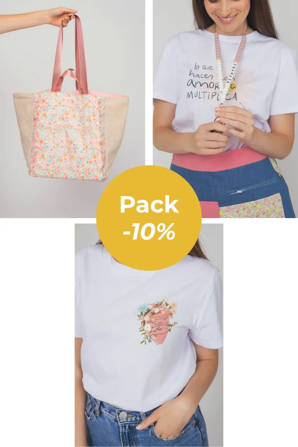 Pack Bolso Bambú + Camiseta Florecer + Lanyard Personalizado